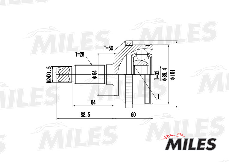 GA20127 MILES ШРУС наружный HONDA ACCORD 1.8-2.0 98-02 (с ABS) (GKN 304734) GA20127