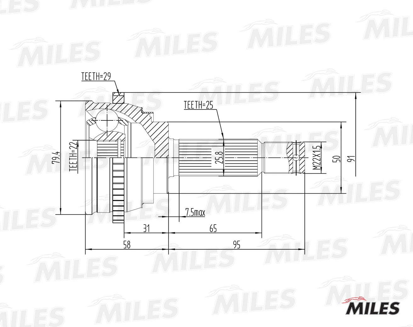 GA20161 MILES ШРУС наружный HYUNDAI ACCENT/ELANTRA 1.3-1.6 94-05 (с ABS) (GKN 303902) GA20161