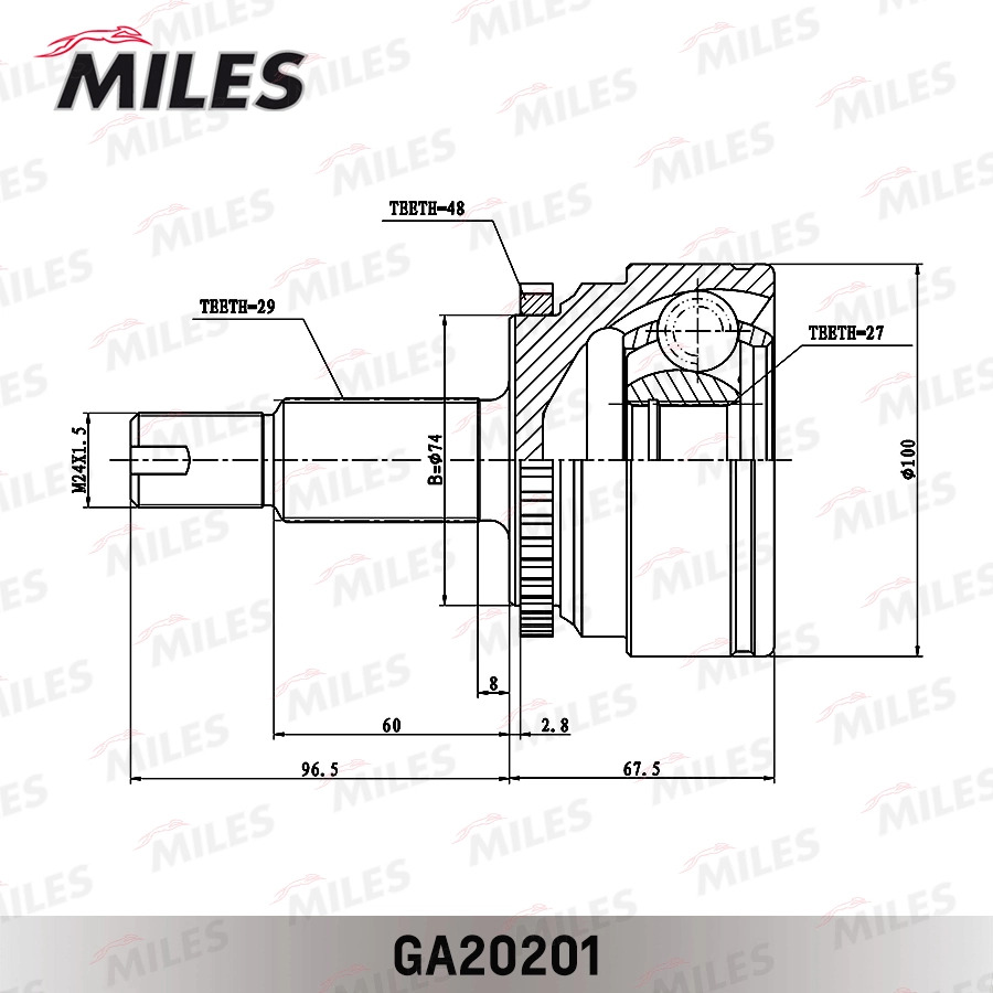 GA20201 MILES ШРУС наружный Land Rover DISCOVERY/RANGE ROVER 2.7-4.4 04- (с ABS) (GSP 830012)
