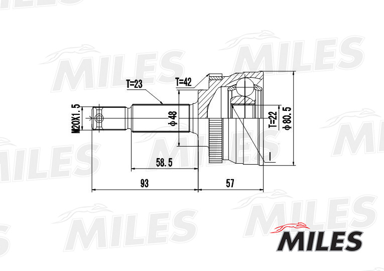 GA20303 MILES ШРУС наружный NISSAN MICRA 1.0 92-03 (с ABS) (GKN 303310) GA20303