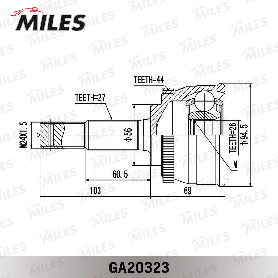 GA20323 MILES ШРУС наружный левый/правый NISSAN PRIMERA (P12,WP12) +ABS. GA20323