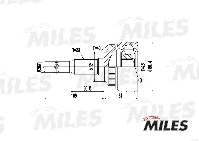 GA20367 MILES ШРУС наружный OPEL VECTRA/CALIBRA 1.6-2.0 87-98 (с ABS) (SKF VKJA3107) GA20367