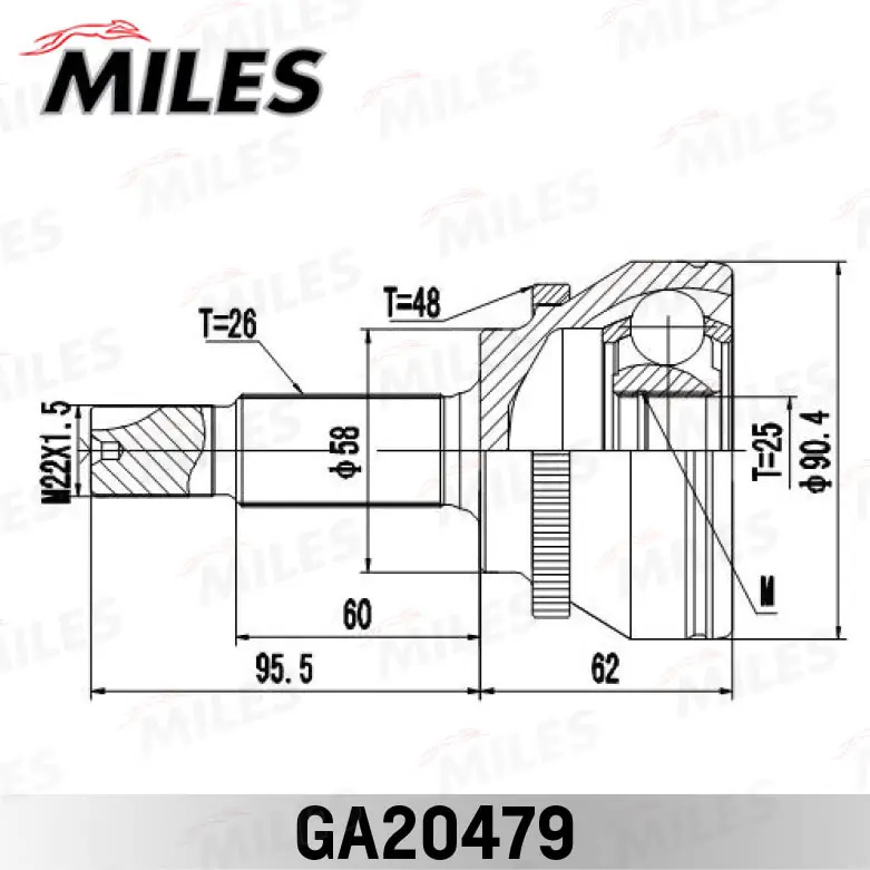 GA20479 MILES ШРУС наружный TOYOTA COROLLA 1.8-2.0D 02- (с ABS) (GKN 304823) GA20479