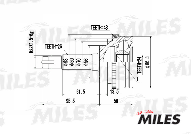 GA20482 MILES ШРУС наружный TOYOTA COROLLA/RAV 4 1.6-2.0 87- (с ABS) (GKN 303587) GA20482