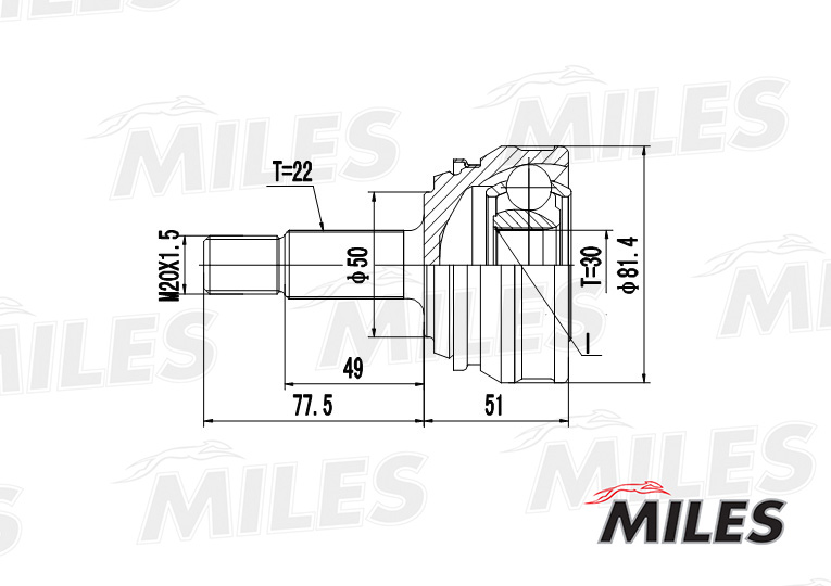 GA20515 MILES ШРУС наружный VW G1/CADDY 1.1-1.8 77-92 (GKN 302115) GA20515