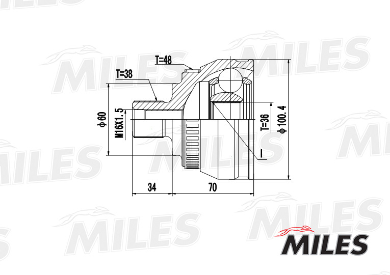 GA20525 MILES ШРУС наружный VW SHARAN/FORD GALAXY/SEAT ALHA MBRA 1.8-2.8 00- (с ABS) (GKN 3035