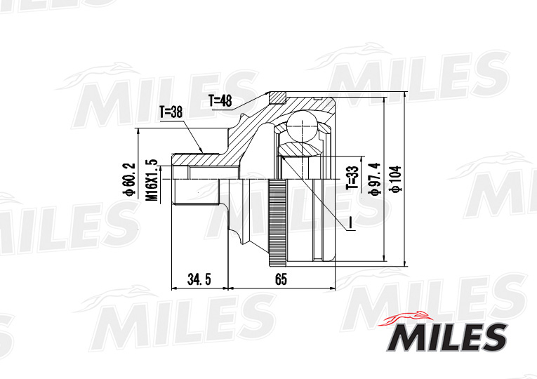GA20527 MILES ШРУС наружный VW T4 1.8-2.5 90-03 (с ABS) (GKN 301964) GA20527