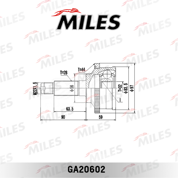 GA20602 MILES ШРУС наружный MAZDA MPV II 2.0/2.0D 99-06 (с ABS) (GSP 834117) GA20602