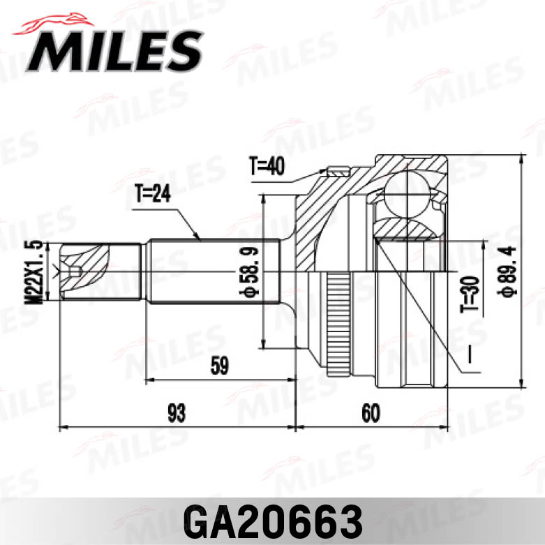 GA20663 MILES ШРУС наружный GEELY MK 1.5 08- +ABS 24/30 шл. GA20663
