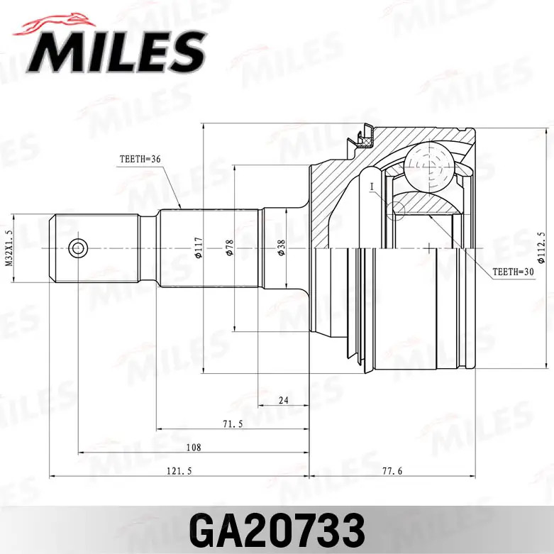 GA20733 MILES ШРУС наружный TOYOTA Land Cruiser(200) 4.0-5.7 07- (GKN 306108) GA20733
