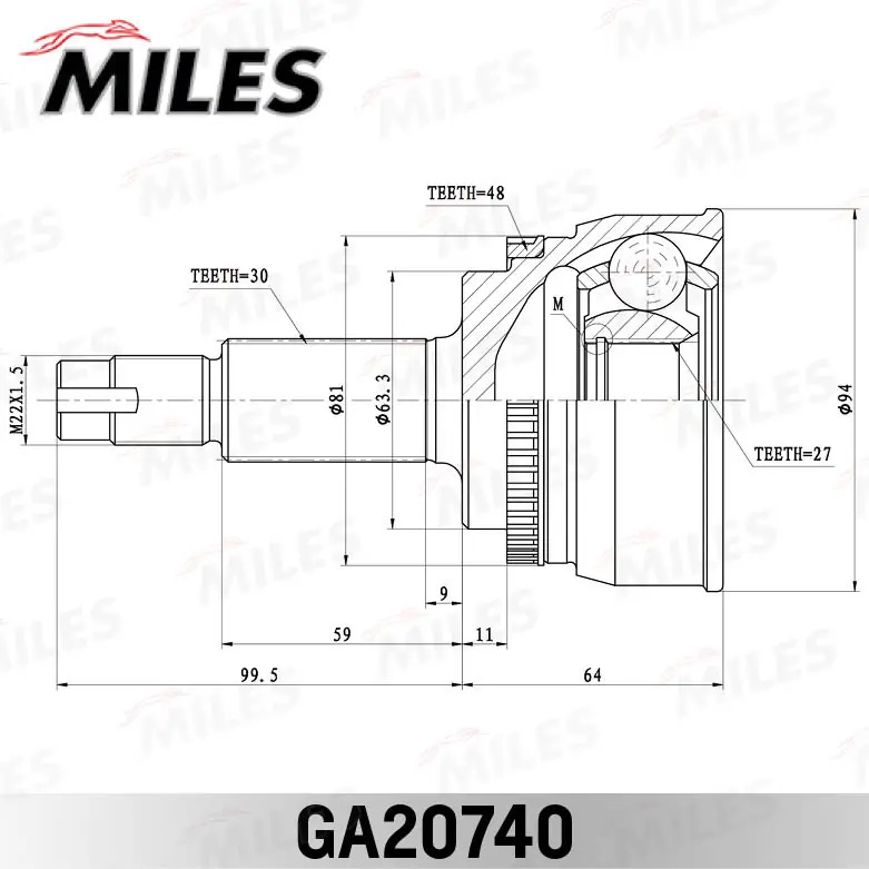 GA20740 MILES ШРУС наружный TOYOTA CAMRY V51/V50 2011- GA20740