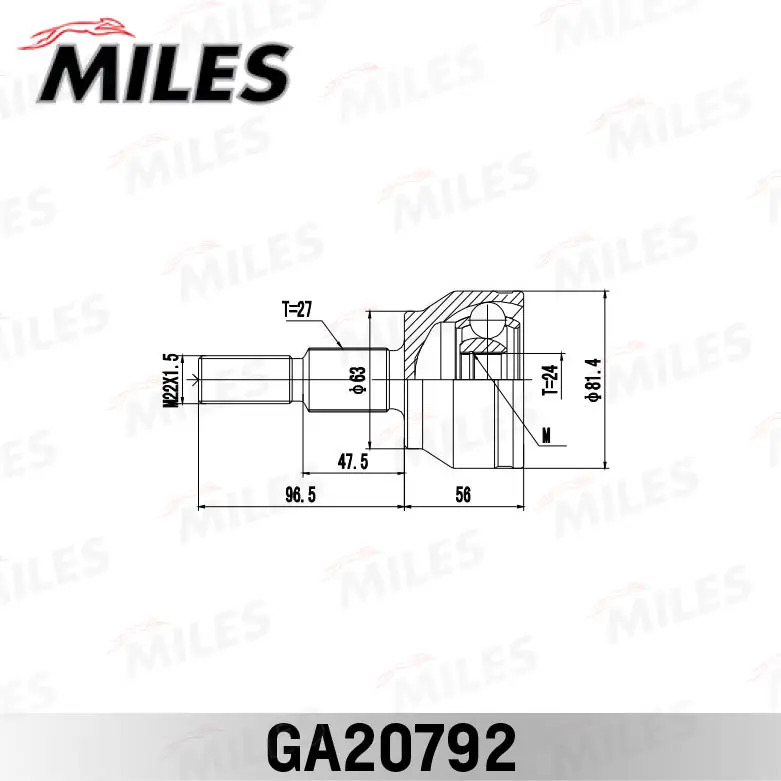 GA20792 MILES ШРУС наружный FORD FOCUS III/C-MAX II 1.6TI 10- (GSP 818244) GA20792