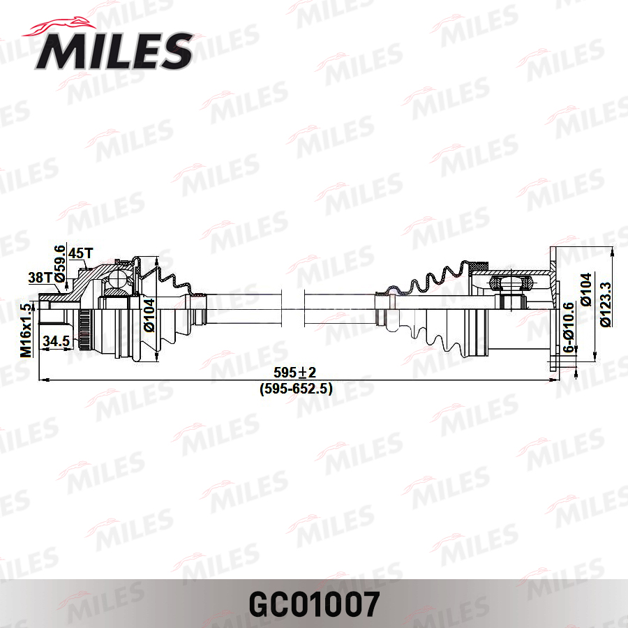 GC01007 MILES Привод в сборе левый AUDI A4 1.8-3.0 00-05 (ABS) (GKN 304291) GC01007
