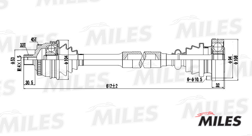 GC01011 MILES Привод в сборе левый AUDI A4/VW PASSAT 1.8-2.0 95-01 (ABS) (GKN 301219) GC01011