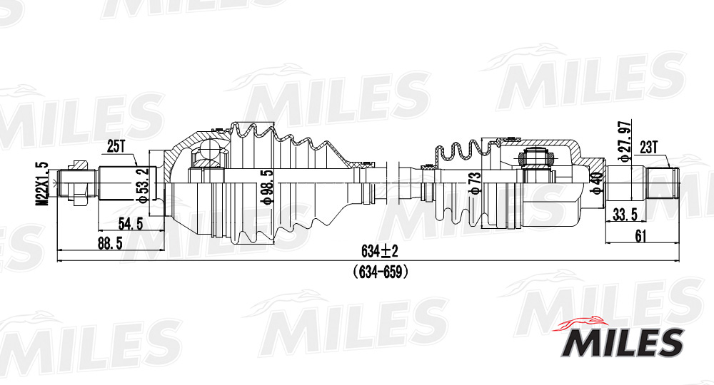 GC01052 MILES Привод в сборе левый FORD FOCUS 1.4-1.8 98-04 (GKN 304232) GC01052