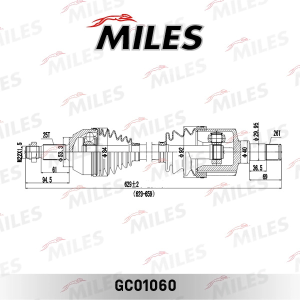 GC01060 MILES Привод в сборе левый FORD TRANSIT CONNECT 02- (GKN 305035) GC01060