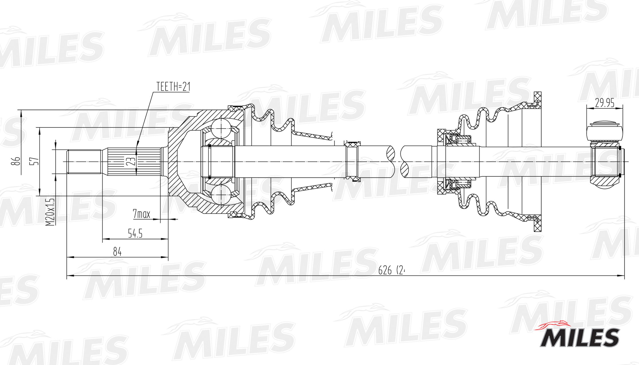 GC01106 MILES Привод в сборе левый RENAULT CLIO II/KANGOO I 1.2-1.6 97- (GKN 301899) GC01106