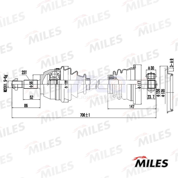 GC01109 MILES Привод в сборе левый RENAULT LAGUNA I 1.6-2.0 97-01 (GKN 303549) GC01109
