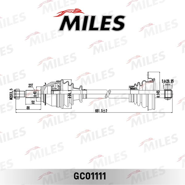 GC01111 MILES Привод в сборе левый RENAULT LOGAN MCV/LADA LARGUS (GKN 304511) GC01111
