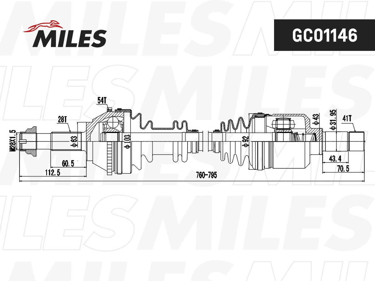 GC01146 MILES Привод в сборе левый CITROEN JUMPER/FIAT DUCATO/PEUGEOT BOXER 1.9-2.8 94-02 (ABS