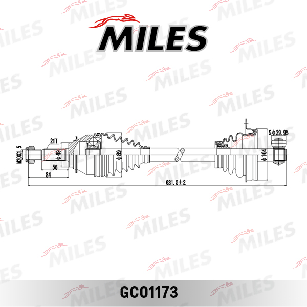 GC01173 MILES Привод в сборе RENAULT LOGAN I/SANDERO 1.2-1.6 04- левый под ABS GC01173