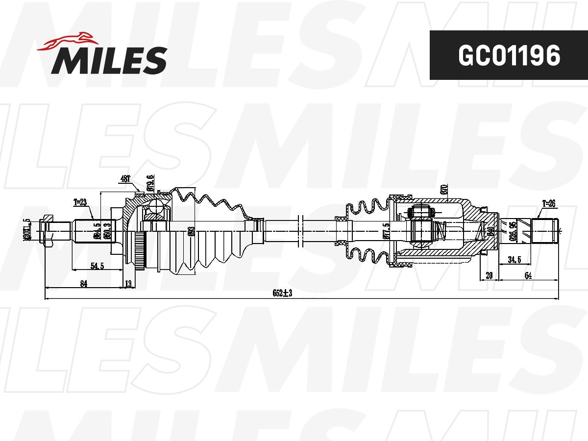 GC01196 MILES Привод левый в сборе Lada Vesta (КПП Renault JH3) GC01196