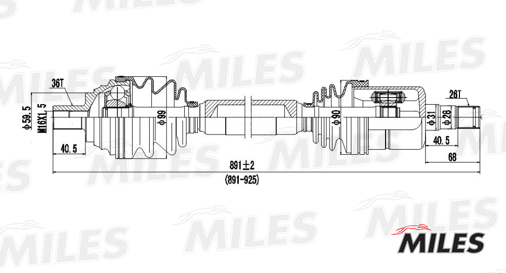 GC02006 MILES Привод в сборе правый AUDI A3/SKODA OCTAVIA/VW PASSAT/GOLF 1.6-2.0 03- (GKN 3047