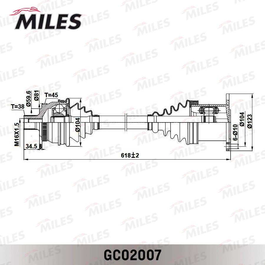 GC02007 MILES Привод в сборе правый AUDI A4 1.8-3.0 00-05 (ABS) (GKN 23629) GC02007