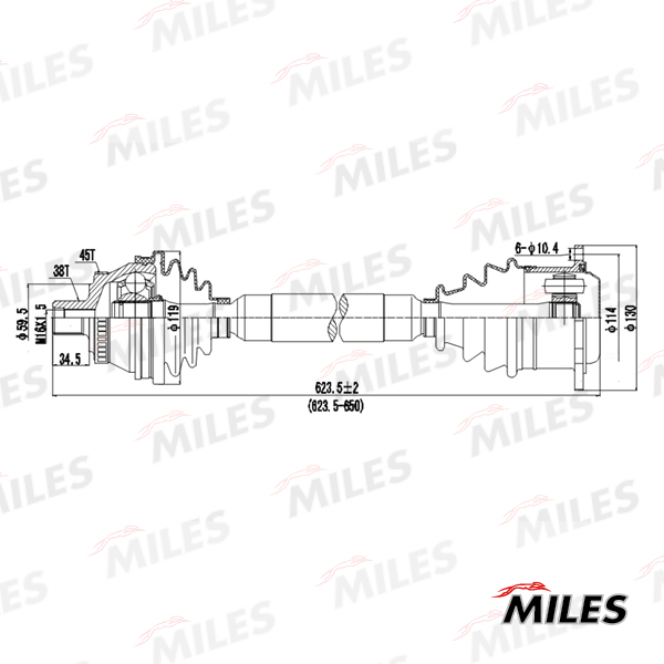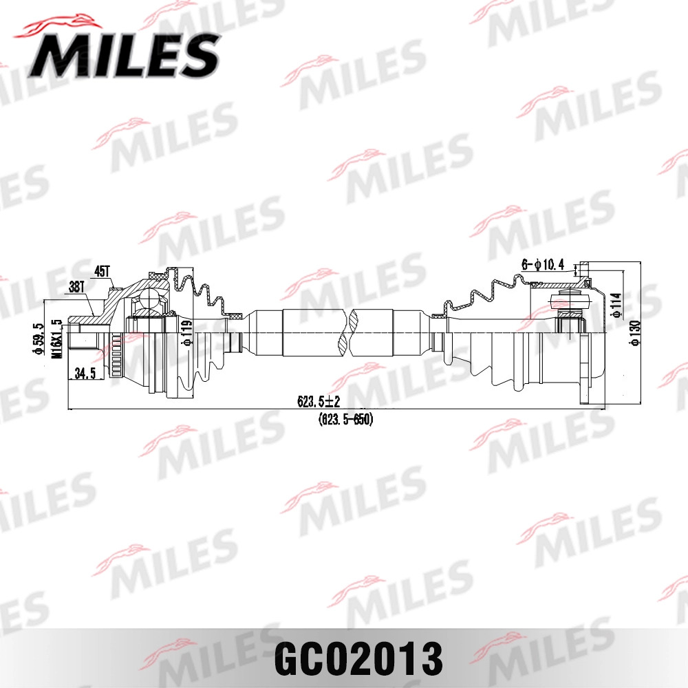 GC02013 MILES Привод в сборе правый AUDI A4/VW PASSAT 1.9TD-2.8 97-00 (ABS) (GKN 301287) GC020