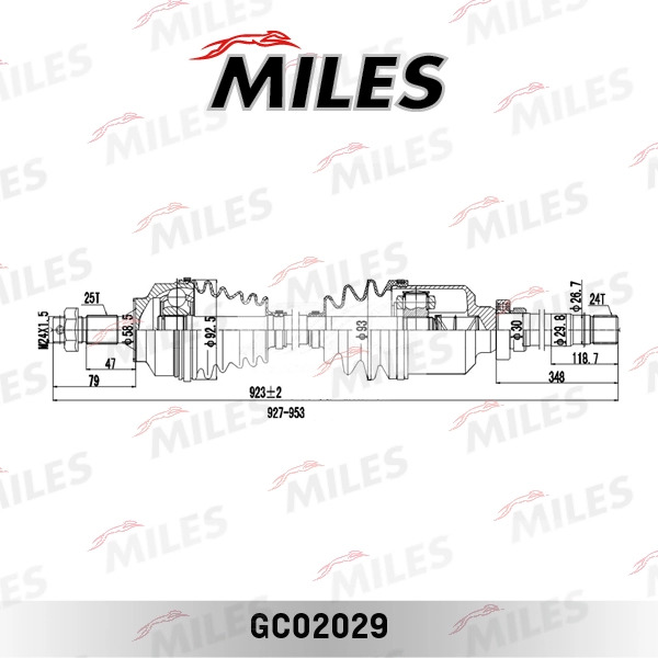 GC02029 MILES Привод в сборе правый CITROEN BERLINGO/C4/PEUGEOT PARTNER/307 1.4HDI-2.0HDI 00-