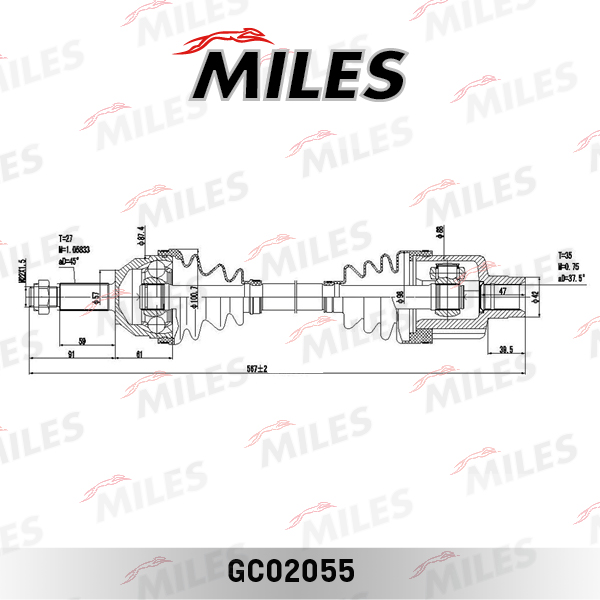 GC02055 MILES Привод в сборе правый FORD MONDEO 1.8-2.5 93-00 (GKN 302397) GC02055