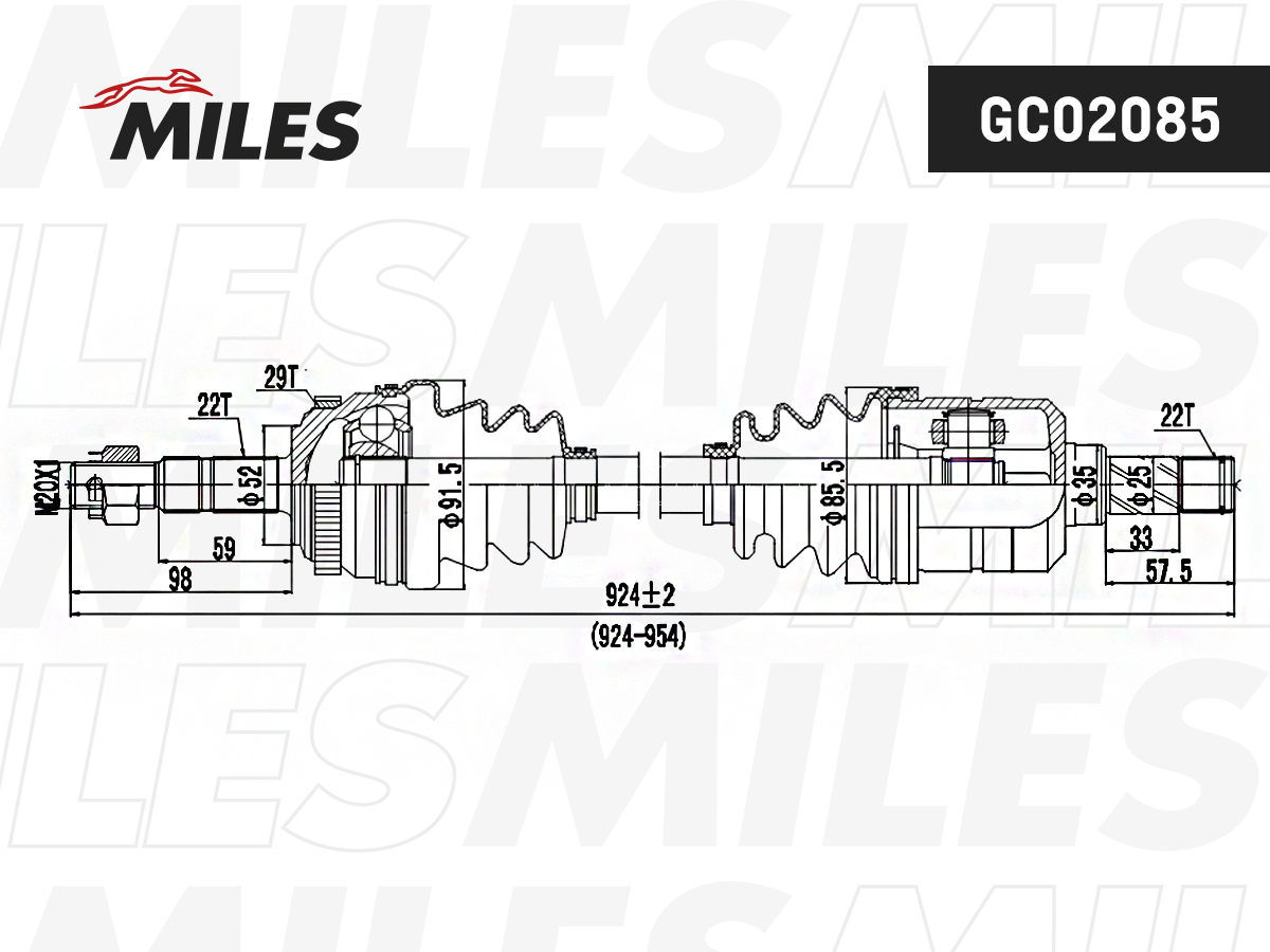 GC02085 MILES Привод в сборе правый OPEL CORSA/CO MBO 1.3-1.7D 00- (ABS) (GKN 304401) GC02085