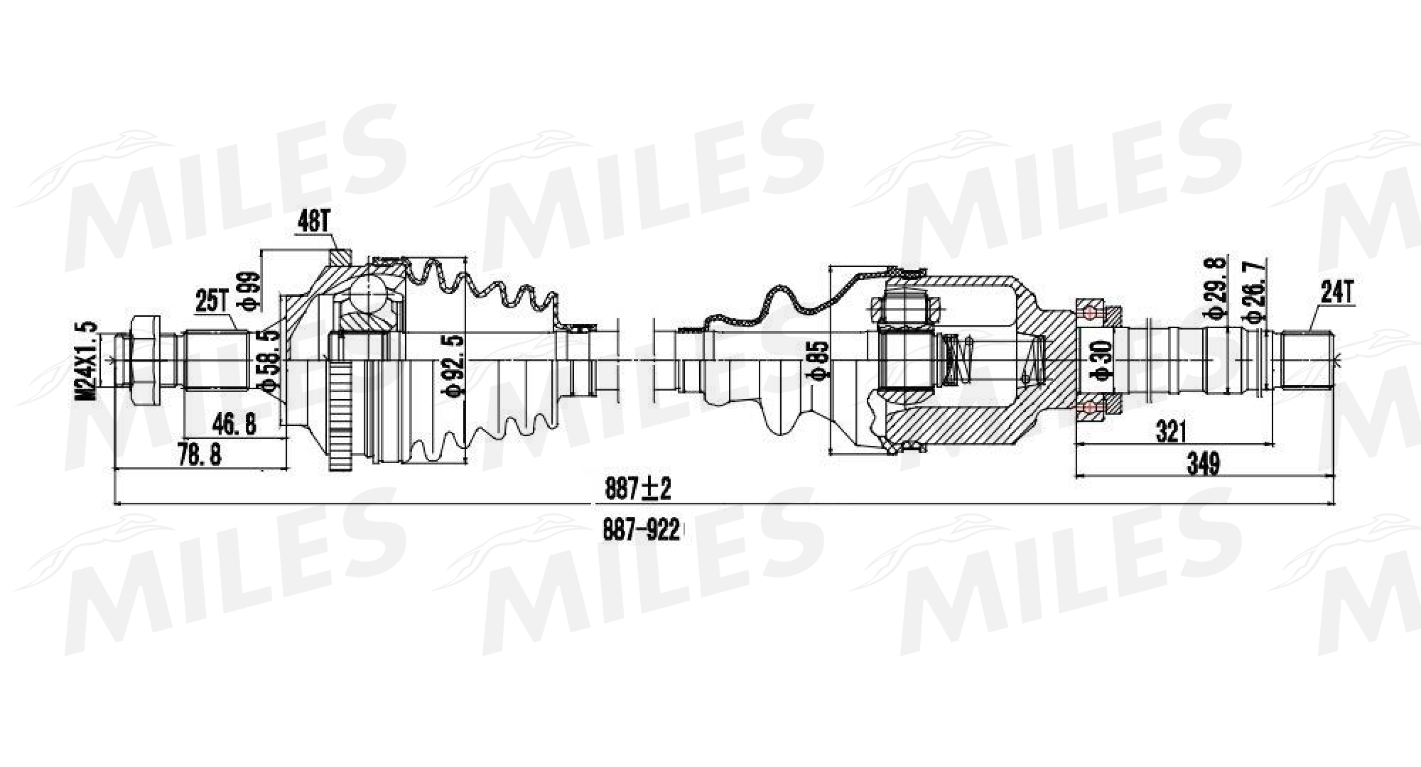 GC02094 MILES Привод в сборе правый PEUGEOT 206 2.0 99- (ABS) (GKN 303217) GC02094