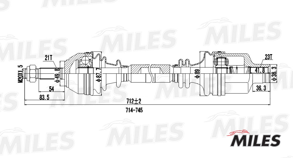 GC02106 MILES Привод в сборе правый RENAULT CLIO II/KANGOO I 1.2-1.6 97- (GKN 303229) GC02106