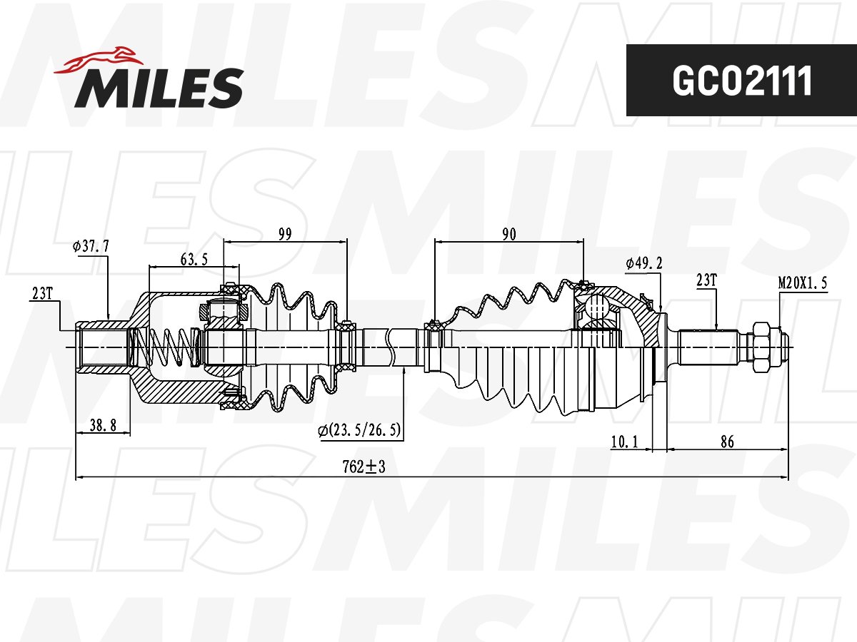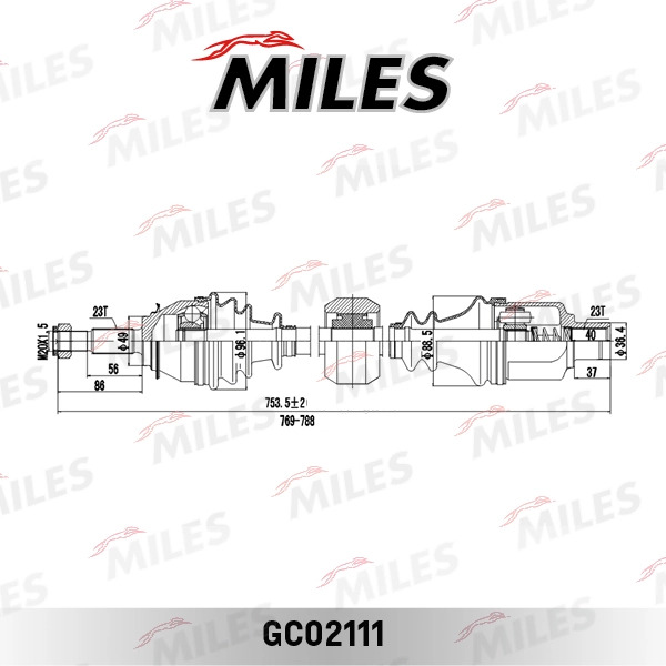 GC02111 MILES Привод в сборе правый RENAULT LOGAN MCV/LADA LARGUS (GKN 304513) GC02111