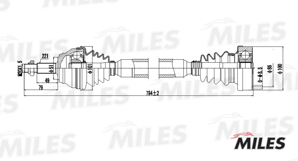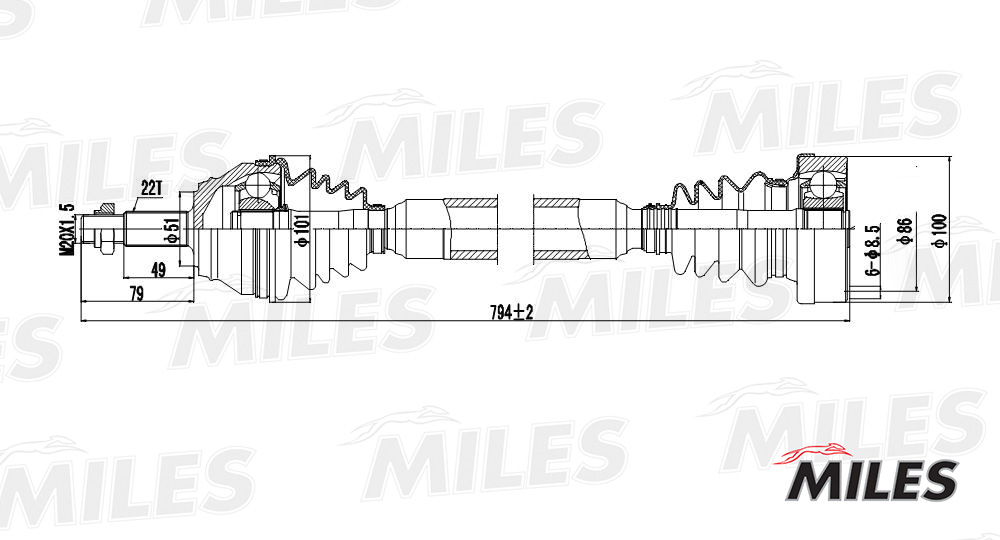 GC02129 MILES Привод в сборе правый VW G3/PASSAT 1.8-2.0 88-98 (GKN 301242) GC02129