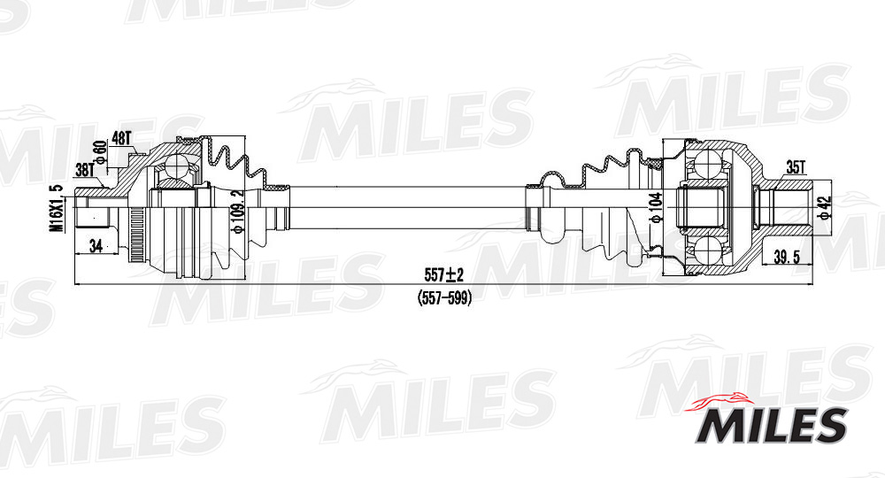 GC02136 MILES Привод в сборе правый (ABS) VW SHARAN/FORD GALAXY/SEAT ALHAMBRA 1.9D 95-00 МКПП
