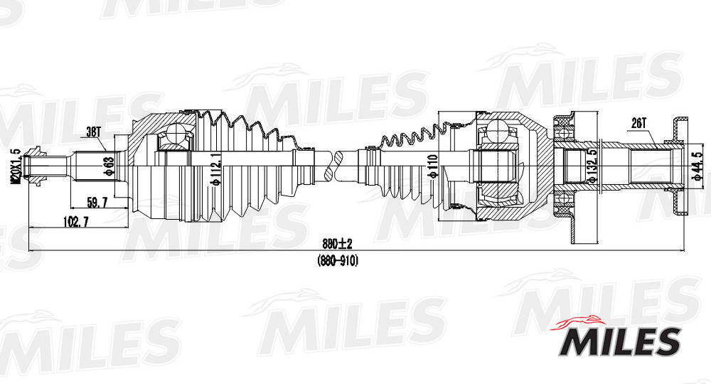 GC02145 MILES Привод в сборе передний правый VW T5 2.5TDI 03-09 (GKN 304502) GC02145