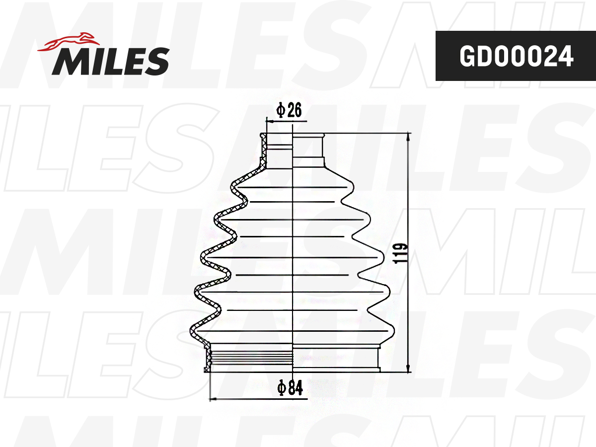 GD00024 MILES Пыльник ШРУСа наружный AUDI A3 I-II/VW GOLF III-VII/PASSAT III-VII 1.6-1.9TDI 96