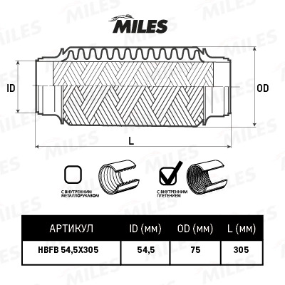 HBFB54.5X305 MILES Труба гофрированная (гофра) внутренним плетением 54.5X305 HBFB54.5X305