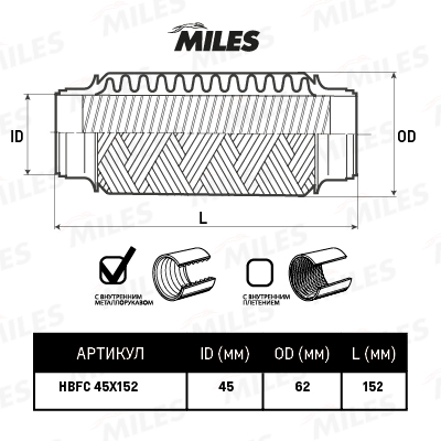 HBFC45X152 MILES Труба гофрированная (гофра) металлорукавом 45X152 HBFC45X152
