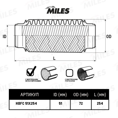 HBFC51X254 MILES Труба гофрированная (гофра) металлорукавом 51X254 (BOSAL 265-681) HBFC51X254
