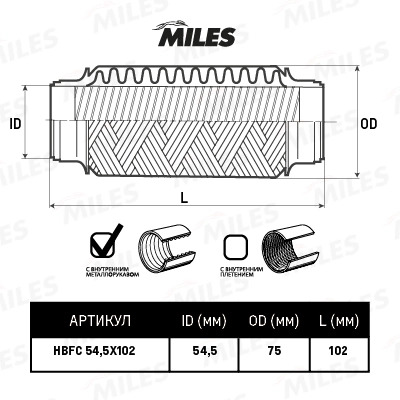 HBFC54.5X102 MILES Труба гофрированная (гофра) металлорукавом 54.5X102 HBFC54.5X102