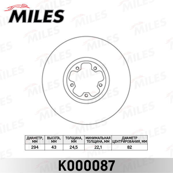 K000087 MILES Диск тормозной передний D294мм. FORD TRANSIT 2.3/2.4D 00-06 (TRW DF4217) K000087