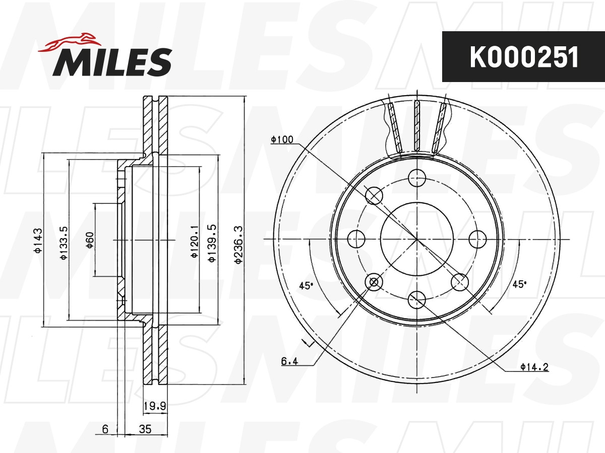 K000251 MILES Диск тормозной передний D236мм DAEWOO NEXIA/CHEVROLET LANOS/AVEO/SPARK (TRW DF16