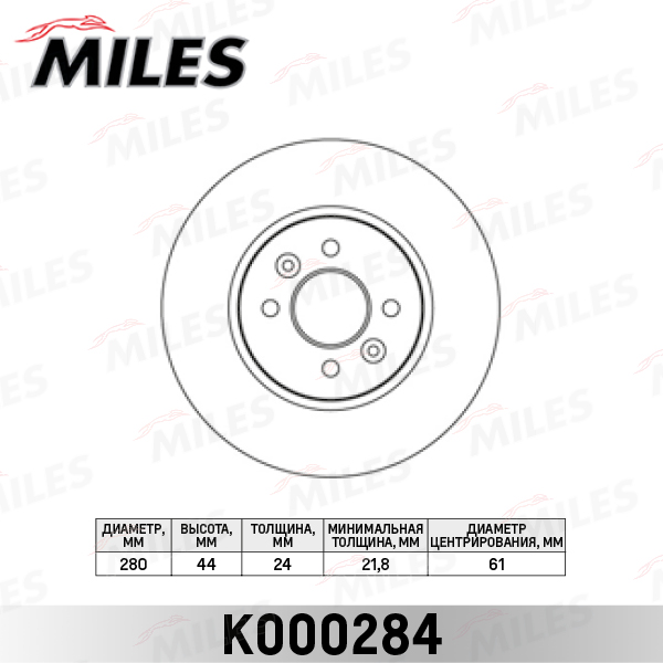 K000284 MILES Диск тормозной передний RENAULT KANGOO 01-/LAGUNA 95-01/MEGANE 96-/SCENIC 99- (T