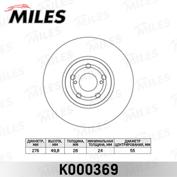 K000369 MILES Диск тормозной передний TOYOTA AVENSIS 1.6-2.4 03- (TRW DF4416) K000369