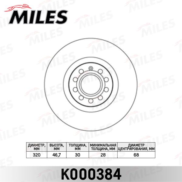 K000384 MILES Диск тормозной передний AUDI A4 2.0-3.2 04-/A6 1.8-4.2 97-05/A6 ALLROAD 00-05 (T