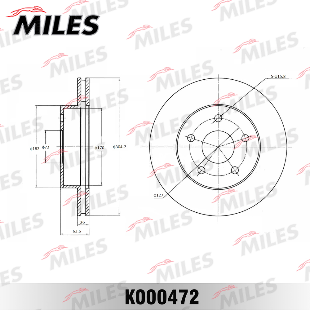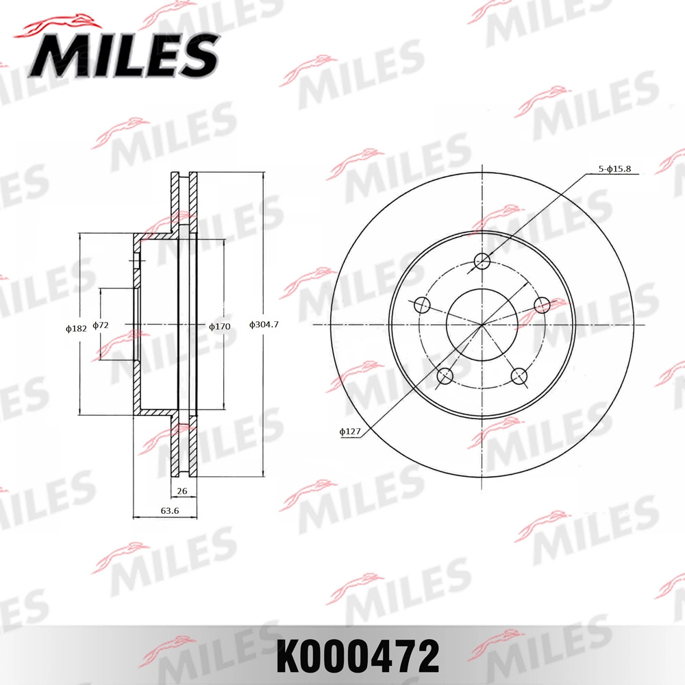K000472 MILES Диск тормозной передний D305мм. JEEP CHEROKEE 91-/GRAND CHEROKEE 99- (TRW DF4170