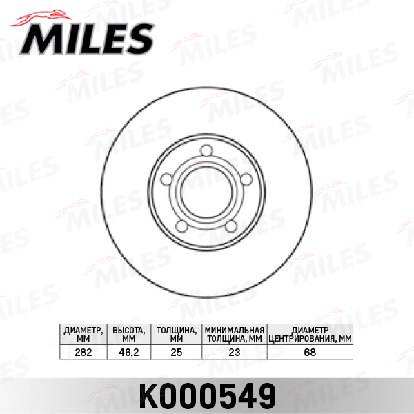 K000549 MILES Диск тормозной передний D282мм. VW PASSAT 1.6-2.8 10.96-04.98/1.8T 20V 00-05 (TR